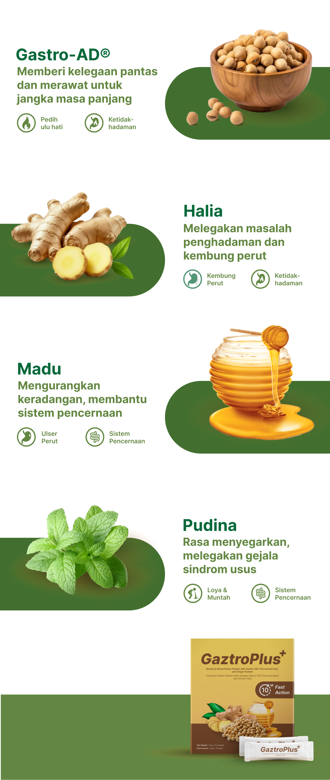 GAZTROPLUS DIPERKAYA DENGAN BAHAN SEMULAJADI BERKUALITI DIPILIH KHAS UNTUK MENINGKATKAN PENGHADAMAN ANDA