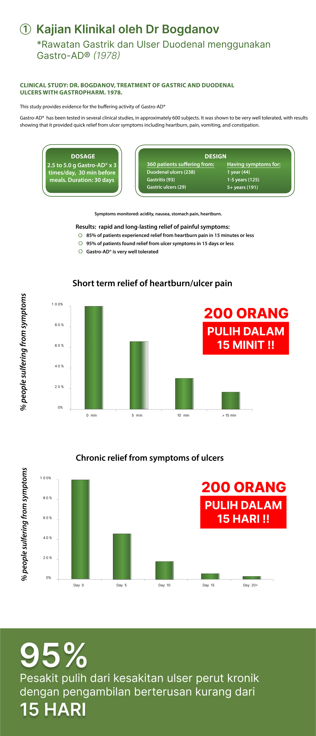 Gastro-AD telah terbukti melalui kajian klinikal ke atas lebih 600 Pesakit